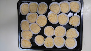margarina partida em pedaços, a raspa de limão e o açúcar.